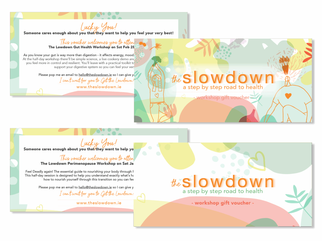 If you are looking to buy a gift that will last longer than the January sales then why not grab a Gift Voucher from The Slowdown? Redeemable against a choice of 2 workshops – with The Lowdown on Perimenopause or The Lowdown on Gut Health it’s sure to be the gift that keeps on giving!